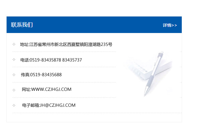 地址:常州市新北區(qū)友邦商務(wù)大廈1幢16、17層  電話:0519-85101652  傳真:0519-85112595  郵編:213022  網(wǎng)址:www.cz-jiayue_cn.58invention.com  郵箱:xiajifengaa@163.com
